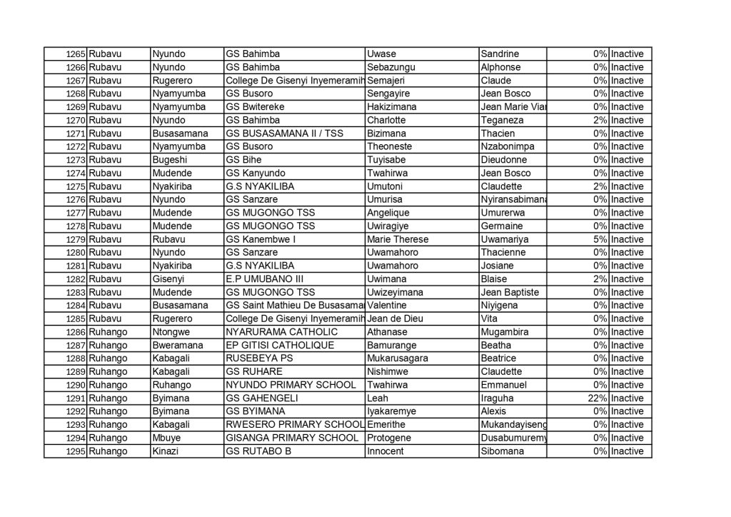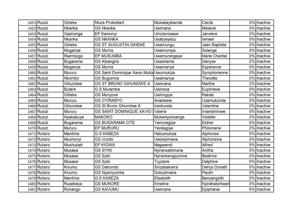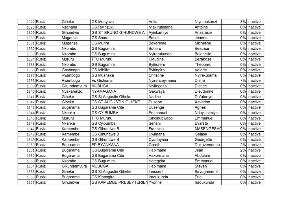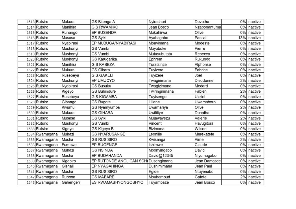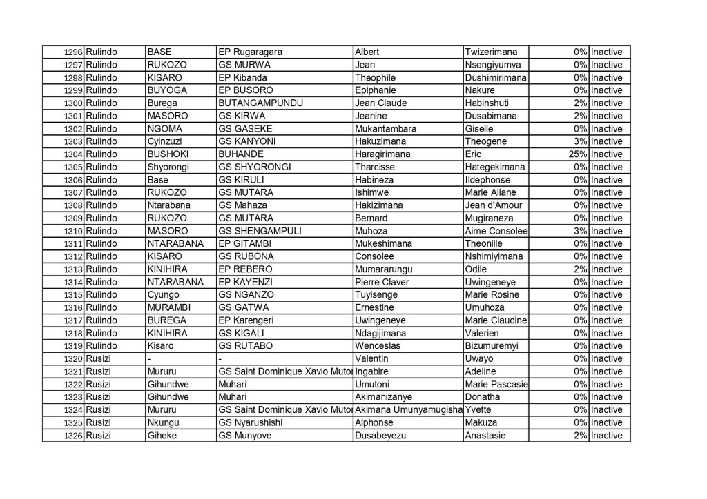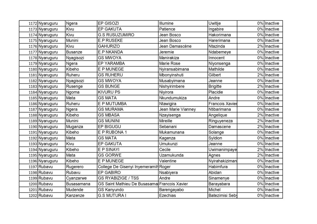 REB List of 1,554 Inactive Primary and secondary teachers in English proficiency training