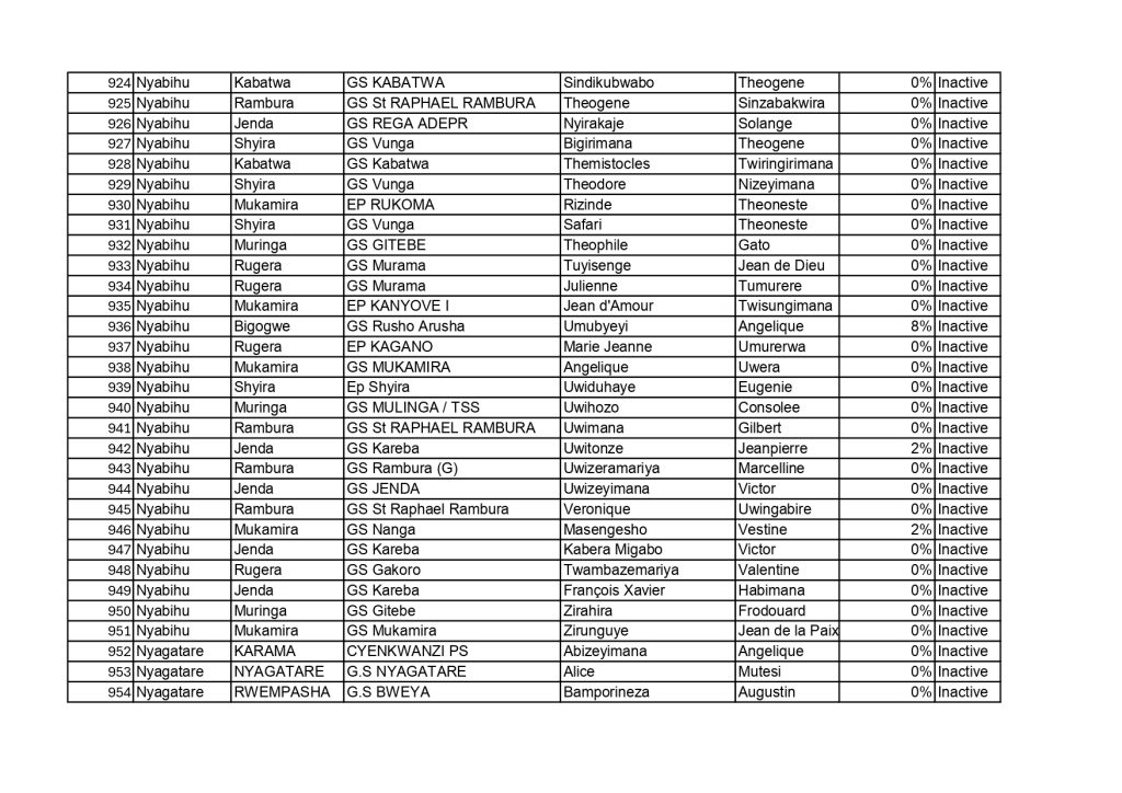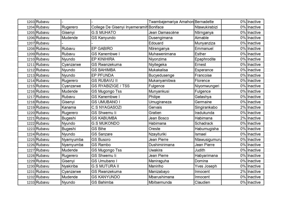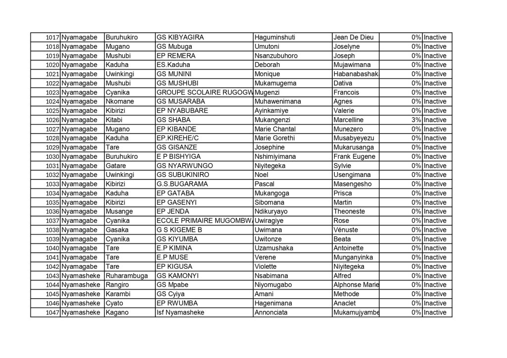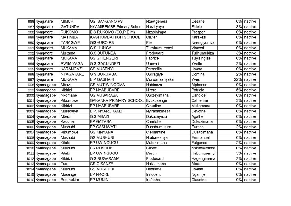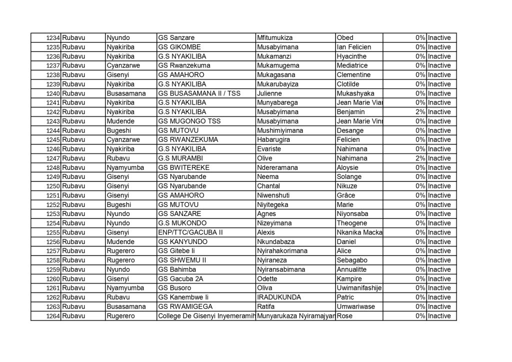 REB List of 1,554 Inactive Primary and secondary teachers in English proficiency training