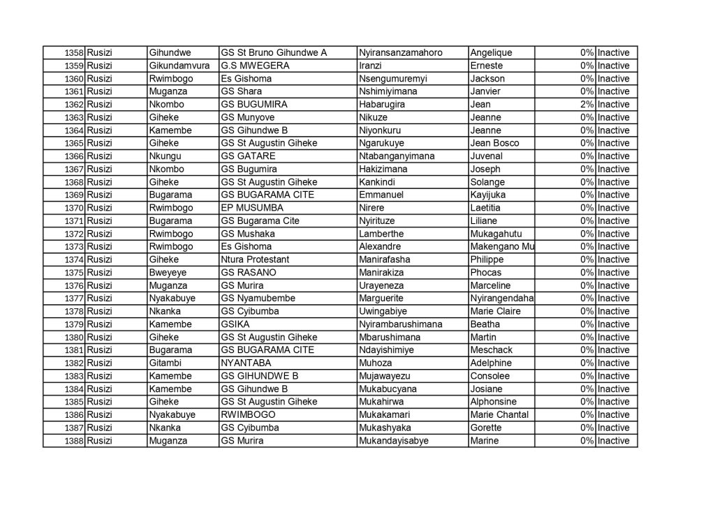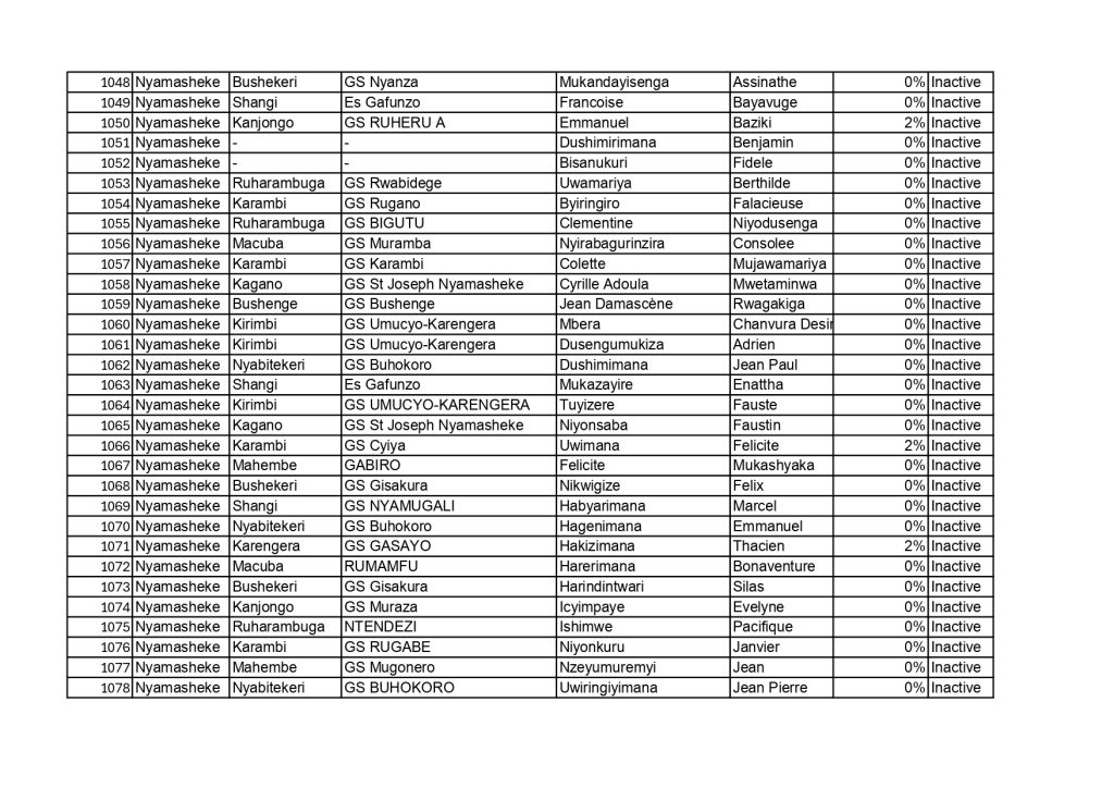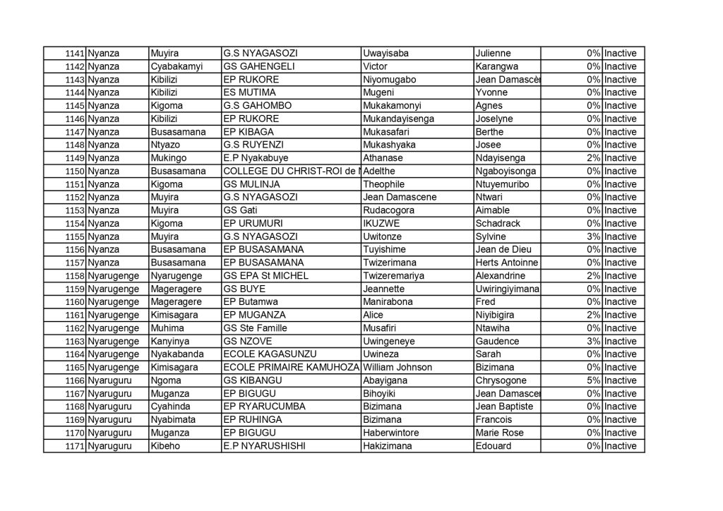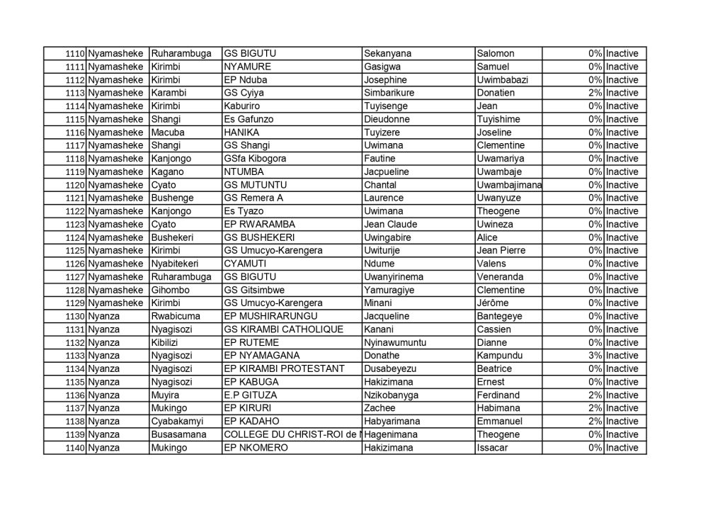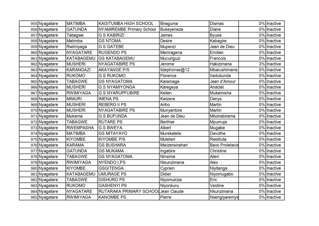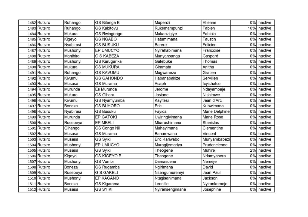 REB List of 1,554 Inactive Primary and secondary teachers in English proficiency training